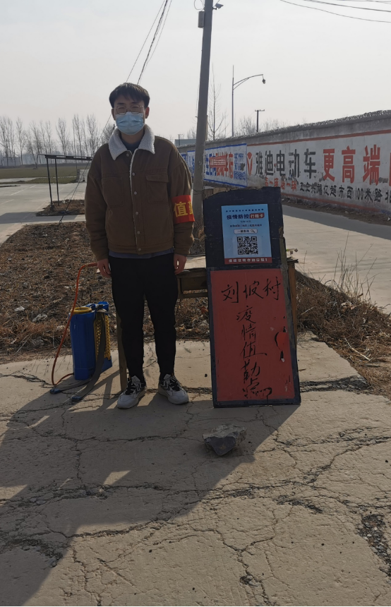今年寒假因为疫情原因,村子里从1月21号又开始了进行封村,并且设立了疫情防控卡点,何磊报名并成为了大学生志愿者。成为大学生志愿者的当天,领导带着村子里的党员和大学生志愿者们在卡点处进行了共产党宣誓,并且明确分工,分好小组之后领导带着志愿者们从村西头的粮站中搬钢管对村子里的每一个路口进行了封闭,留下了唯一可以进出村子的卡点处。