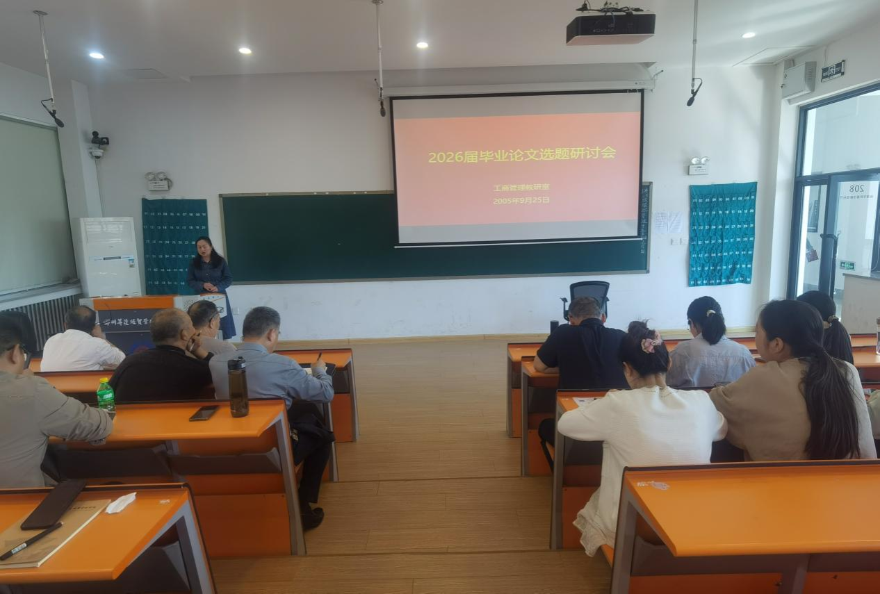 “万事开头难”,毕业论文选题是保障论文质量的首要环节,更是衔接工商管理专业人才培养与企业管理实践需求的关键节点。为精准把控2026届毕业论文选题质量,强化论文与工商管理专业人才培养目标的契合度,提升研究实践价值,2025年9月25日下午,工商管理教研室在教学2号楼208教室召开2026届毕业论文选题专题研讨会,会议由教研室主任董芳芳老师主持,全体教师参会。