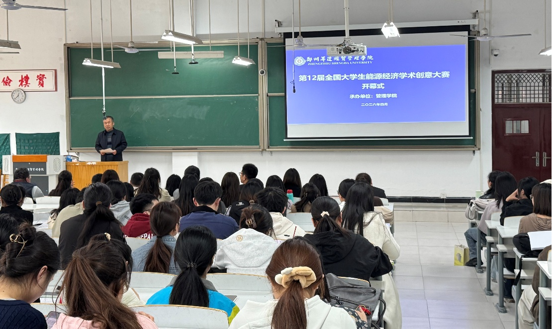 2026年4月2日,由管理学院主办的第十二届全国大学生能源经济学术创意大赛郑州升达经贸管理学院校赛在时金楼116开幕。开幕式由管理学院书记职正路主持,双创学院院长王铮、管理学院院长朱影影、校外评审专家及各参赛队伍代表共同出席。