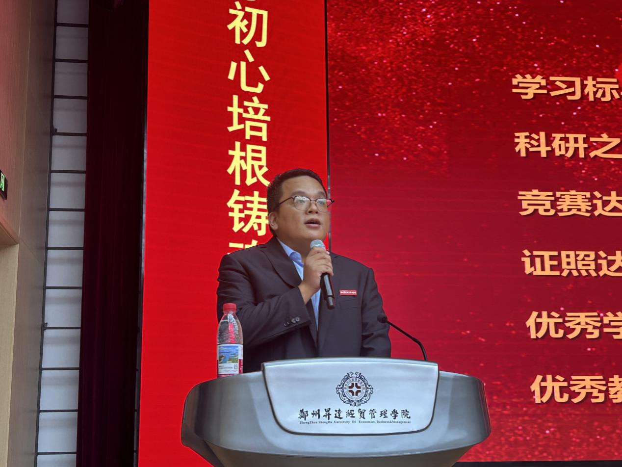 院长朱影影在热烈的掌声中发表重要讲话,她不仅为新生们解惑答疑,还详细介绍学院的发展历程、学科特色以及未来规划,让新生们对管理学院有更深入的了解。