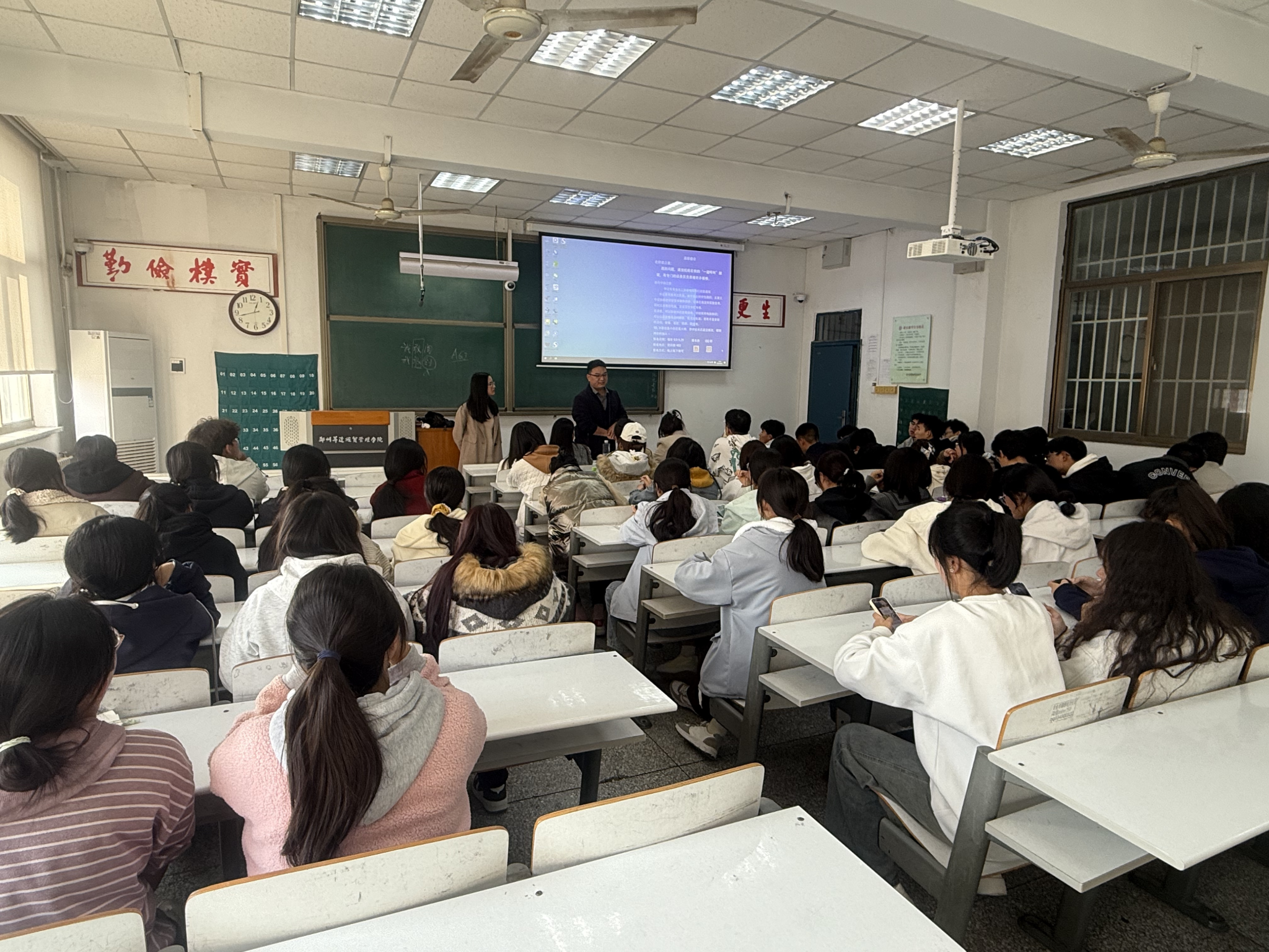 “挑战杯”全国大学生课外学术科技作品竞赛、“挑战杯”中国大学生创业计划竞赛、全国大学生电子商务“创新、创意及创业”挑战赛、大学生创新创业训练项目等多项权威赛事。王老师特别强调,这些赛事对学生综合素质提升、考研、考公及就业都具有显著加分价值,并向同学们梳理了各赛事之间的逻辑关系。针对参加高级别竞赛的基本要求与团队组建,王老师结合历年实际,建议团队组建应注重跨专业、跨年级合作,突出能力互补,并鼓励学生积极寻求专业教师的指导。在“创意怎么来”这一关键议题上,王老师分享了成功项目的共同特点,引导学生关注国家战略、社会痛点与学科前沿,从数字经济、美丽中国、乡村振兴等领域寻找选题,并注重项目的创新内核与社会价值。在交流环节,同学们围绕项目选题、团队构建、赛事流程等踊跃提问,王老师一一给予细致解答。现场气氛热烈,同学们对参赛表现出浓厚兴趣。