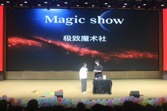 在歌舞热潮之后,极致魔术社带来神秘莫测的《魔方谜域》。奇幻的魔术表演紧紧抓住观众目光,舞台上瞬息万变的奇迹,引发现场阵阵惊叹。