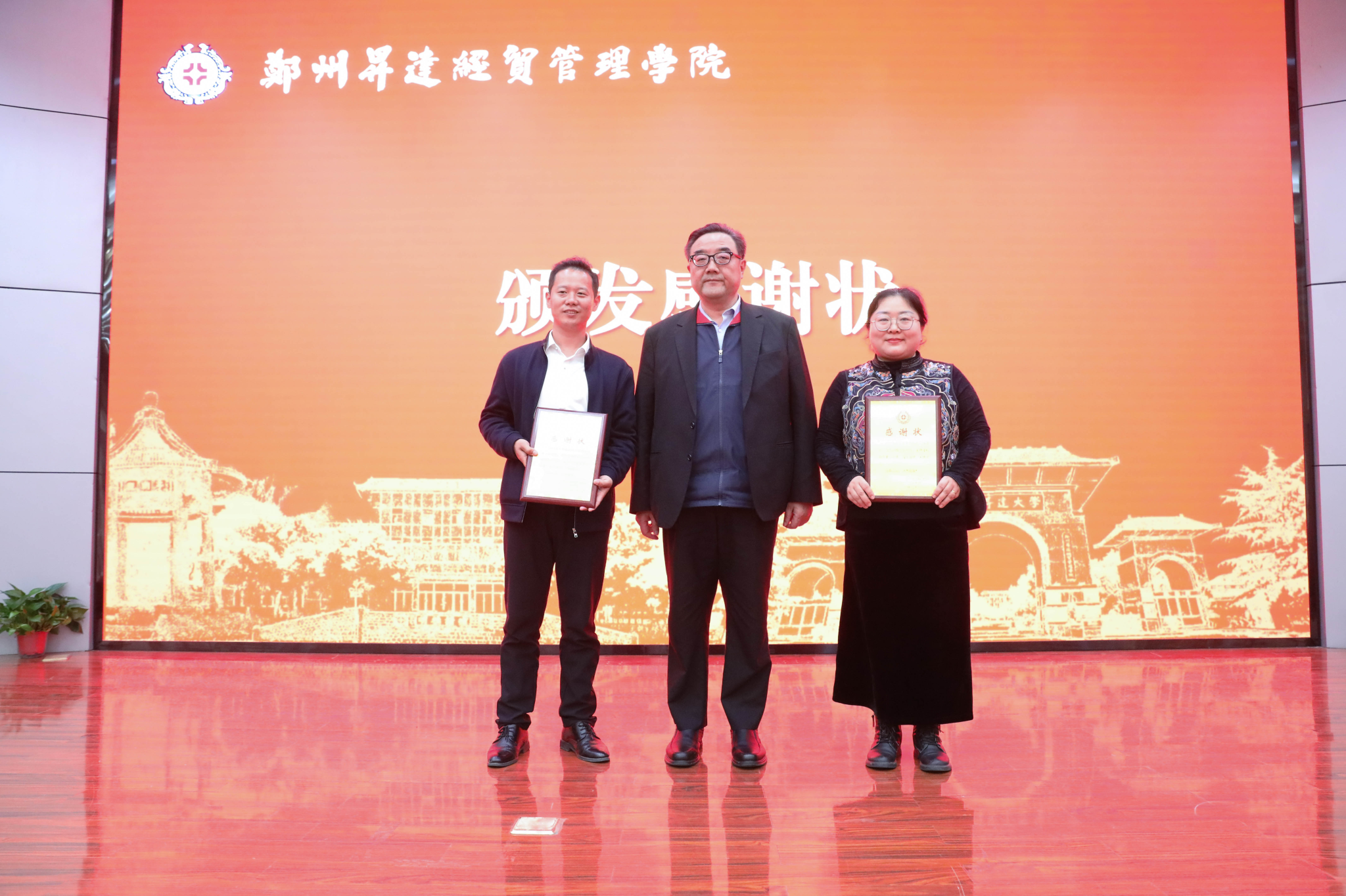 校友捐赠环节,管理学院校友会顾问李响向母校捐赠书法作品三幅,秘书长张书会赞助此次大会全部文创袋。学校董事长向捐赠校友颁发感谢状以示感谢。李响校友因公未能出席,特委托管理学院校友会副会长吴广营出席捐赠和接受感谢状。