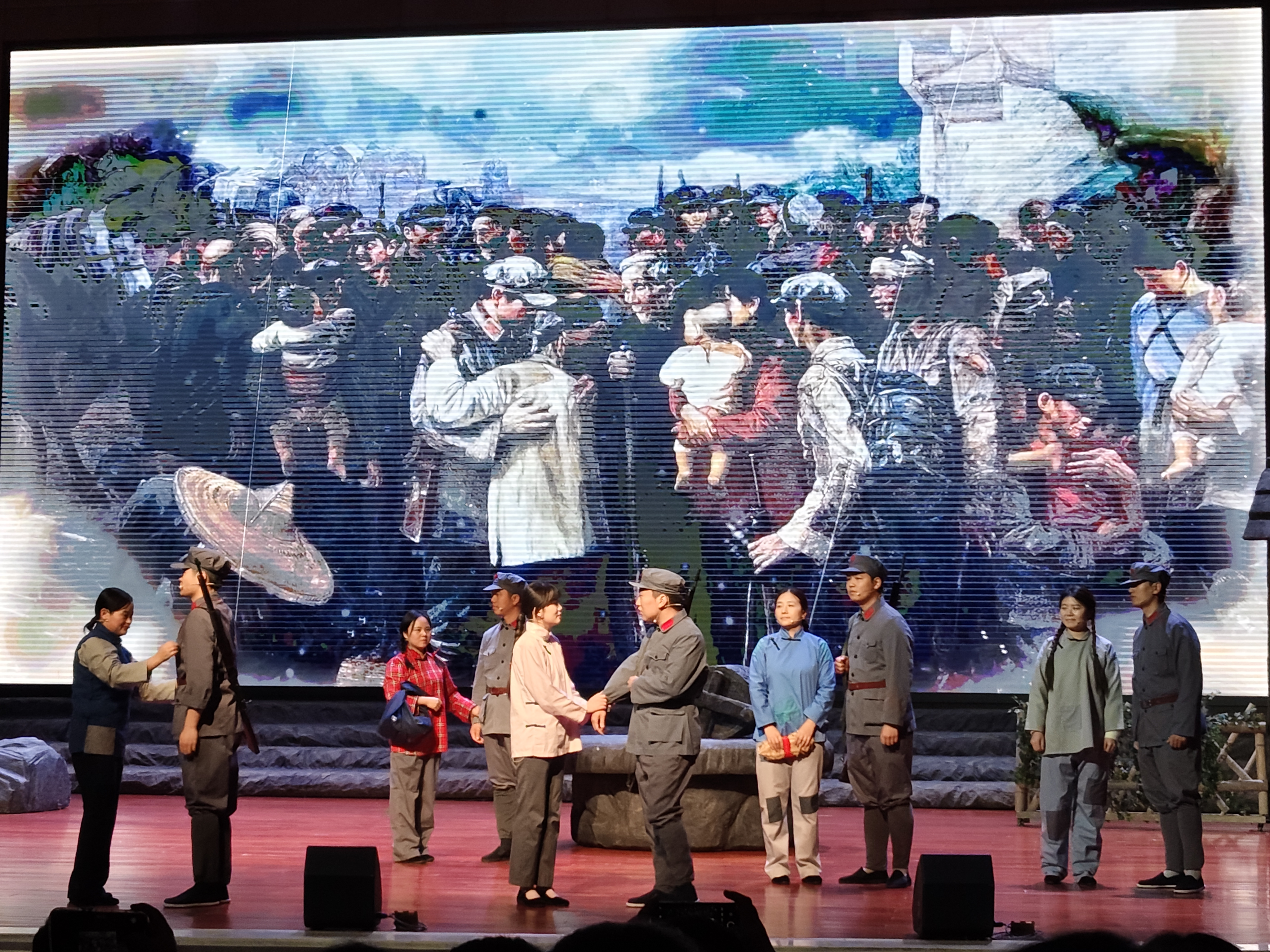 在情景教学环节,党员们集体观看沉浸式音乐党课《歌声中的大别山》。该党课通过“歌谣叙事+历史重现+精神解码”的创新表达,以《黄安谣》《八月桂花遍地开》《送郎当红军》等大别山区经典红歌为线索,在古今场景切换中触摸红色历史记忆,让红色历史变得生动鲜活而充满温度。我院四位教师党员还参与了党课的表演环节,更添现场感染力。这场音乐党课以历史与现实交织的独特方式,有效增强了党性教育的实效性,进一步提升了大别山精神的感染力与传播力。