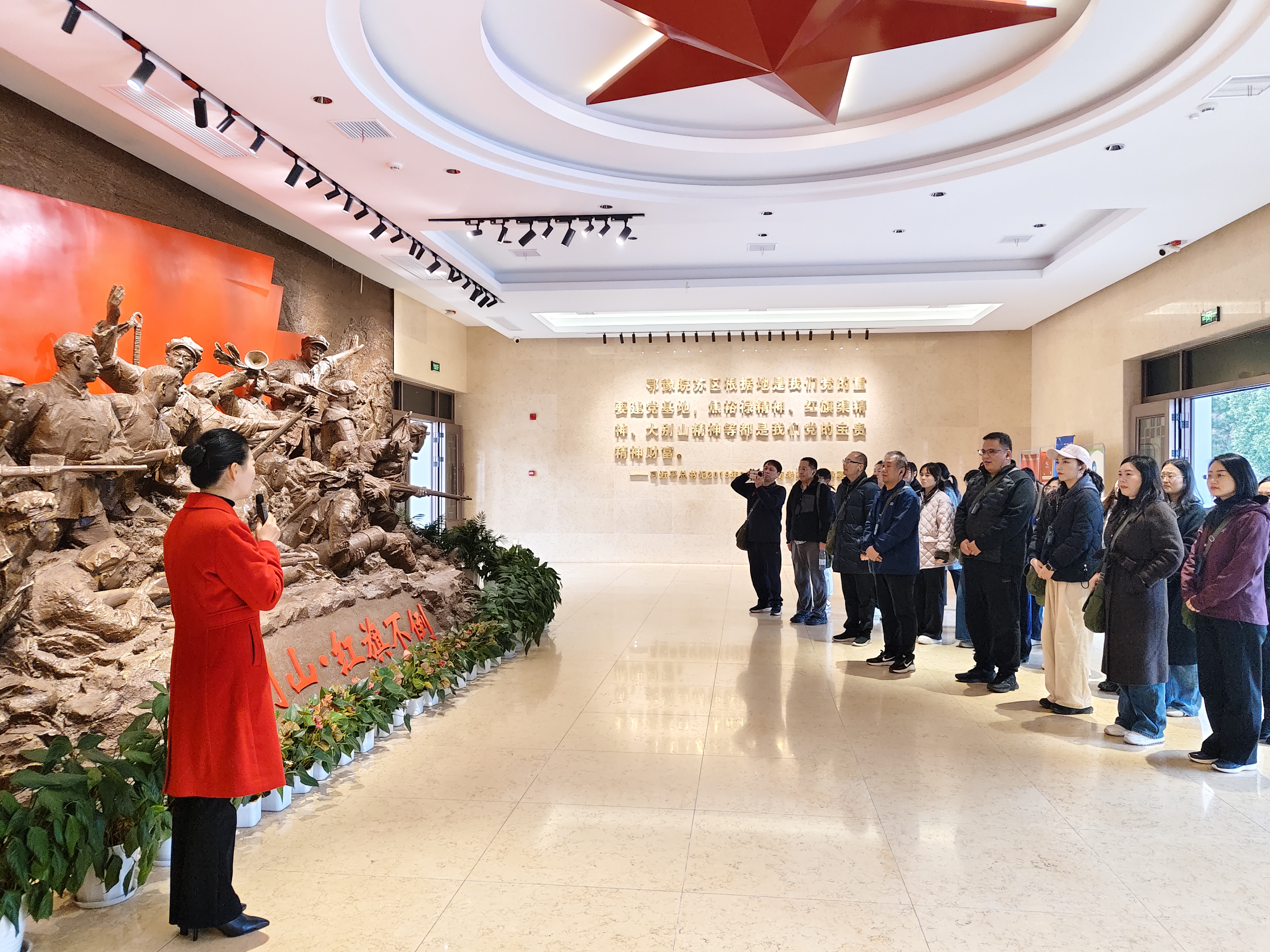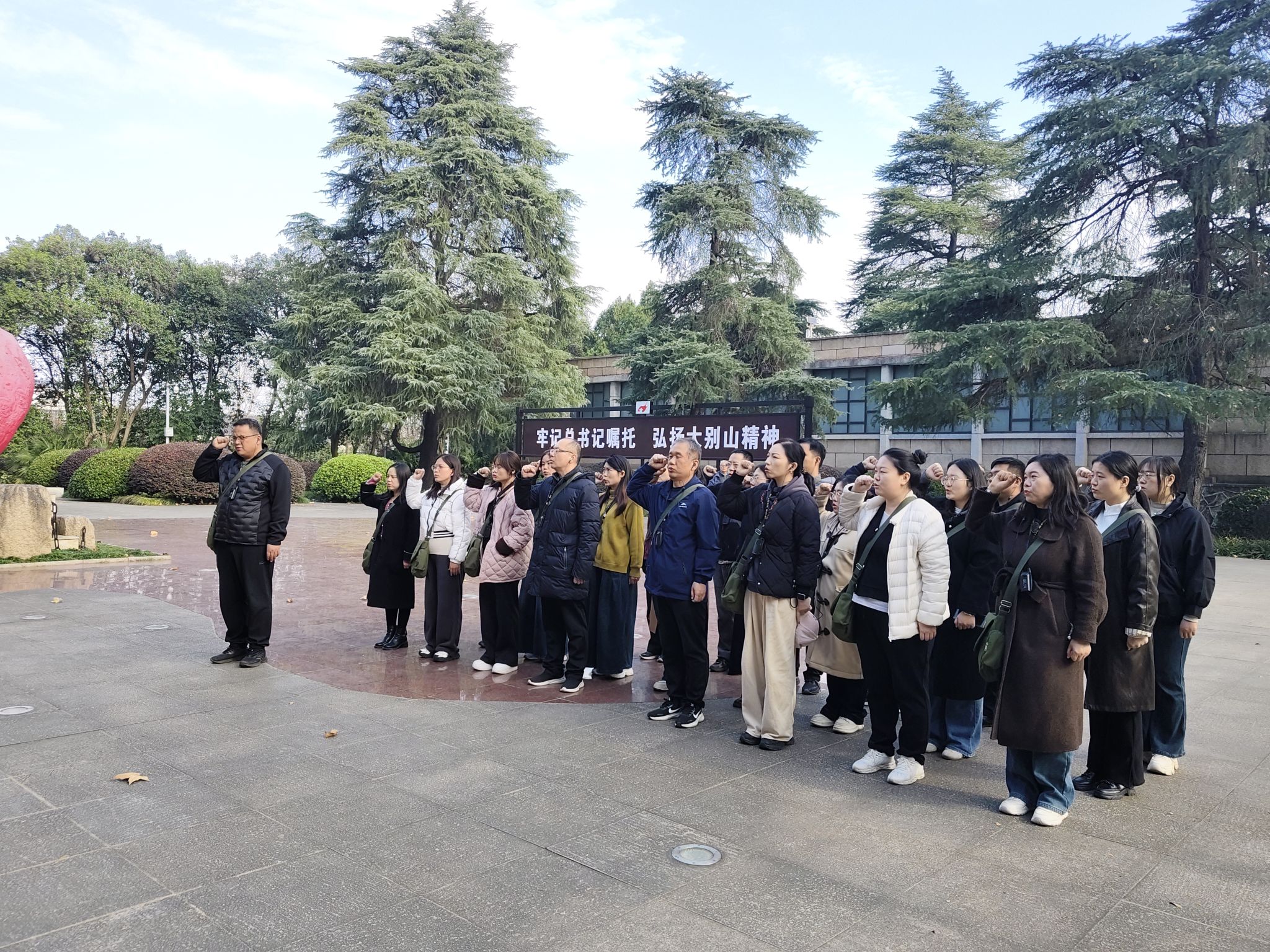 为深入学习贯彻党的二十届四中全会精神,传承红色基因、淬炼党性修养,汲取奋进力量,管理学院于11月22日至23日组织教职工党员赴大别山干部学院开展“传承大别山精神,筑牢党性担当”主题党日活动。本次活动采取现场教学与情景教学相结合的方式开展。