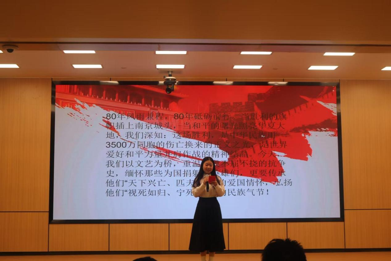 五号选手胡心语带来《中国人民抗日战争暨世界反法西斯战争胜利80周年文艺晚会》模拟主持。她以庄重开场点明主题,结合抗战时期青年救亡图存的事迹,唤起缅怀与敬意,烘托出厚重纪念氛围。