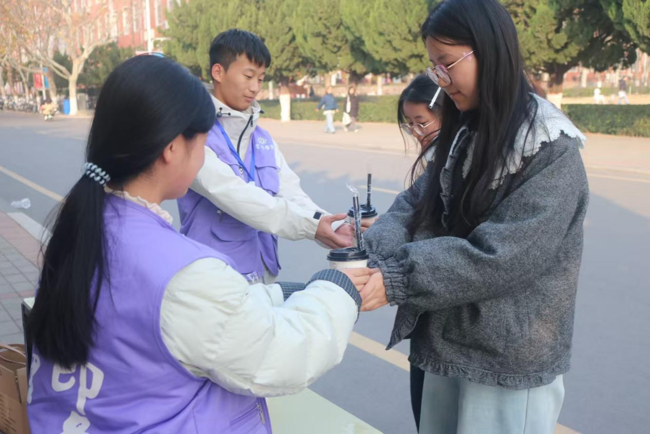 为切实体现对备考学子的关怀,管理学院精心准备具有提神醒脑功效的热咖啡,并在送出每一杯咖啡时附上暖心鼓励的话语。对于正在备考的同学们,这份温暖不仅驱散复习的疲惫,更让他们感受到学院的关怀,也为他们注入满满的备考动力。