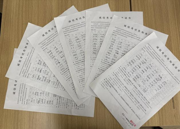 随后,各班级组织学生签署诚信考试承诺书签字仪式。同学们逐一在《诚信考试告知承诺书》上郑重签名,以书面形式承诺遵守考试纪律、杜绝作弊行为,将诚信准则落实到实际行动中。签满姓名的承诺书,不仅是一份约定,更是青年学子对自我的责任与约束。