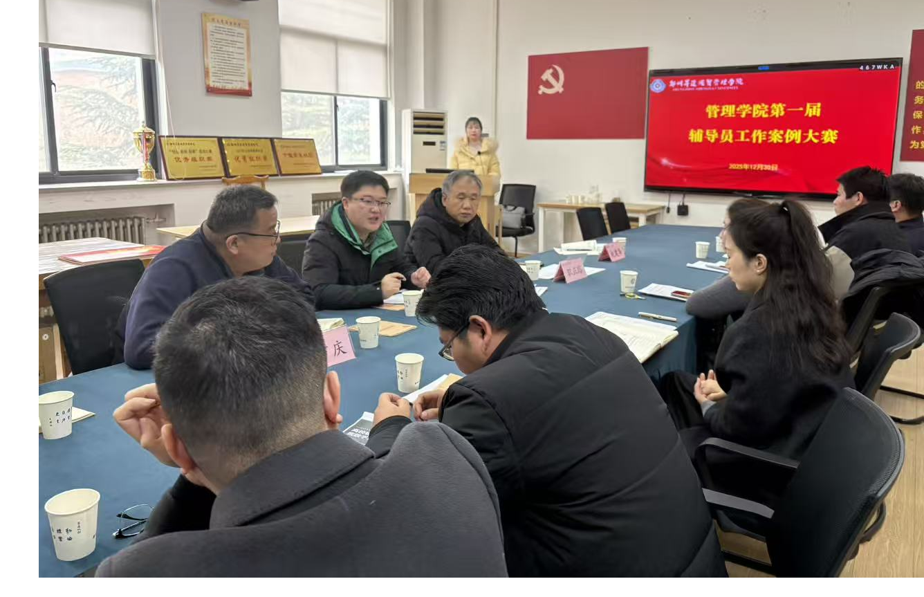 为深入学习贯彻习近平新时代中国特色社会主义思想,全面落实全国、全省教育大会和高校思想政治工作会议精神,积极研究探索新时代学生工作新特点、新规律、新途径和新方法,管理学院于2025年12月30日10:30在教学二号楼305举办第一届辅导员工作案例大赛。管理学院党委书记职正路、意识形态科科长赵建华、思政科科长张颢、管理学院党委副书记许广庆以及管理学院全体辅导员参加了此次大赛。