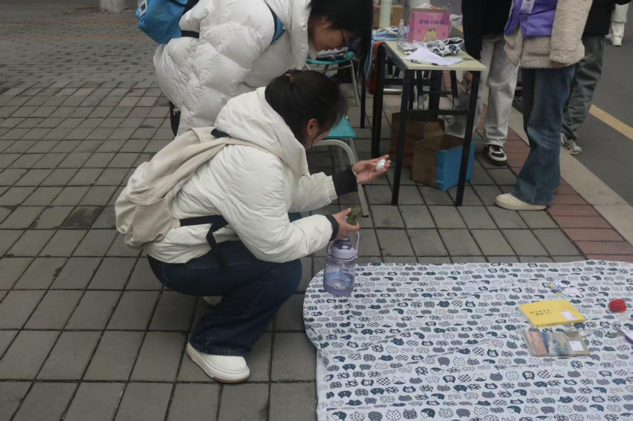 活动现场,同学们带着闲置的物品踊跃参与,在置换摊位前精心挑选、友好交换。一本本承载知识的旧书、一件件实用的文具,从“被遗忘的角落”走向新的使用者,既减少资源浪费,又让温暖在传递间流动。大家以物换情,在轻松的氛围里践行着“奉献、友爱、互助、进步”的志愿精神。