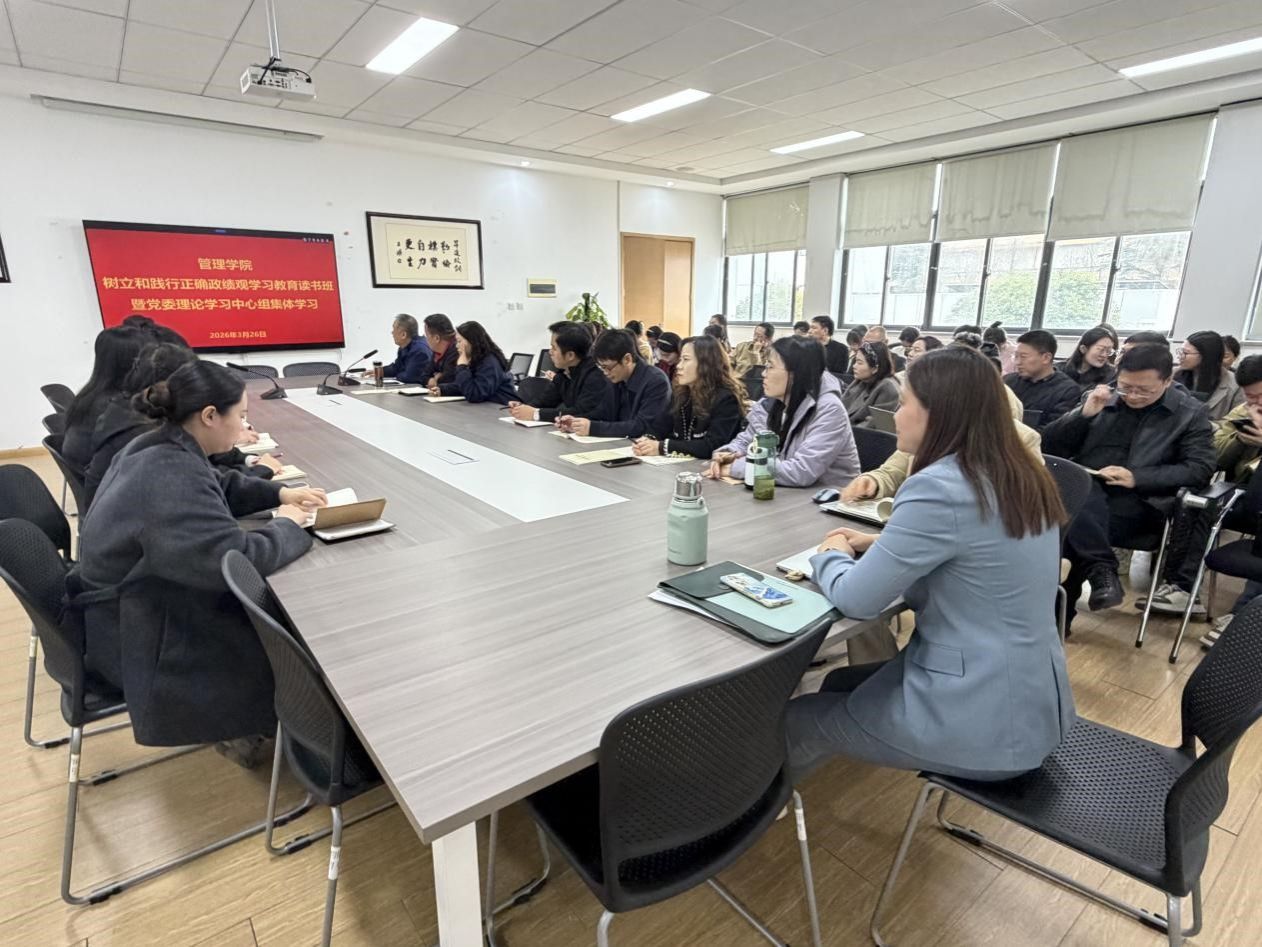 3月26日至27日,管理学院举办树立和践行正确政绩观学习教育读书班暨党委理论学习中心组(扩大)学习会议,组织全体师生党员深入学习习近平总书记关于树立和践行正确政绩观的重要论述。本次读书班采取个人自学、集中辅导、支部研讨、中心组深学相结合的形式,分层分类组织全体师生党员、干部深入开展学习研讨,推动学习教育入脑入心、见行见效。